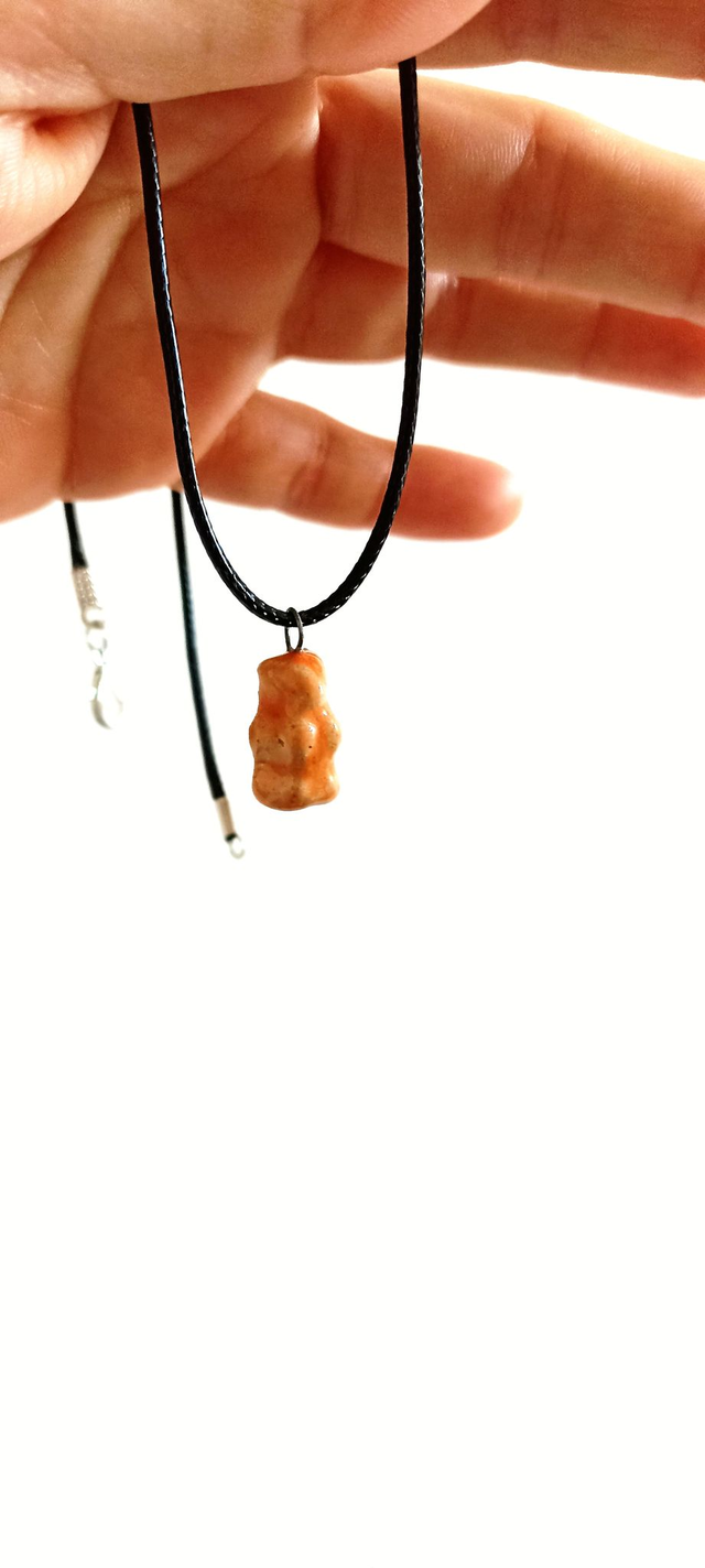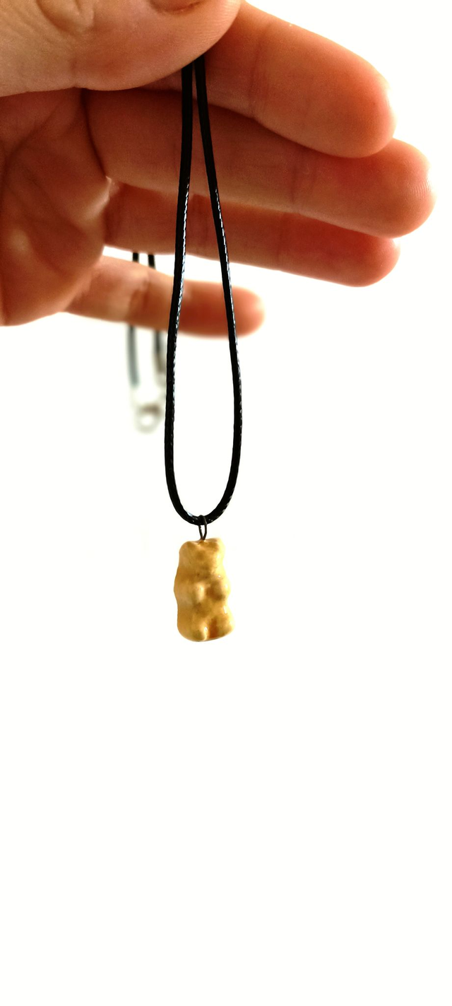 Add a playful touch to your accessories collection with this handmade gummy bear necklace pendant. Crafted with care, this unique jewelry piece features a vibrant, detailed gummy bear charm that’s perfect for adding a pop of color and fun to any outfit. Whether you're dressing up for a casual day out or looking for a quirky gift, this pendant necklace offers a delightful blend of whimsy and style. Lightweight and durable, it’s designed to be comfortable for everyday wear. Elevate your look with this charming accessory—perfect for gummy bear lovers and anyone who enjoys handmade, eye-catching jewelry.