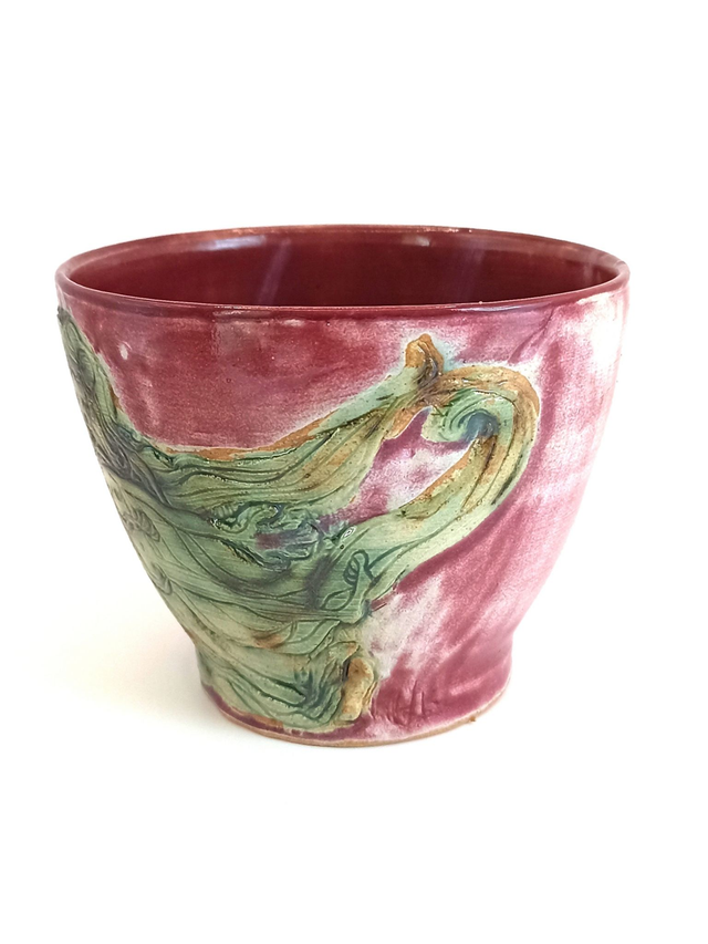 This wheel-trown stoneware bowl with a carved design embodies the essence of woman power with a singing woman design. Perfect for decorate your home as a standalone piece or functional as a tableware piece. This piece is unique and adds a touch of elegance to your dining experience. Elevate your table setting with this stunning pottery bowl that combines practicality with artistry. Add this unique handcrafted piece to your collection today.
